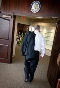 Mayor Oscar Goodman’s final walk out of his office as Mayor of Las Vegas. He would moments later swear in his wife Carolyn Goodman as the new mayor of Las Vegas and turn the keys over to her.