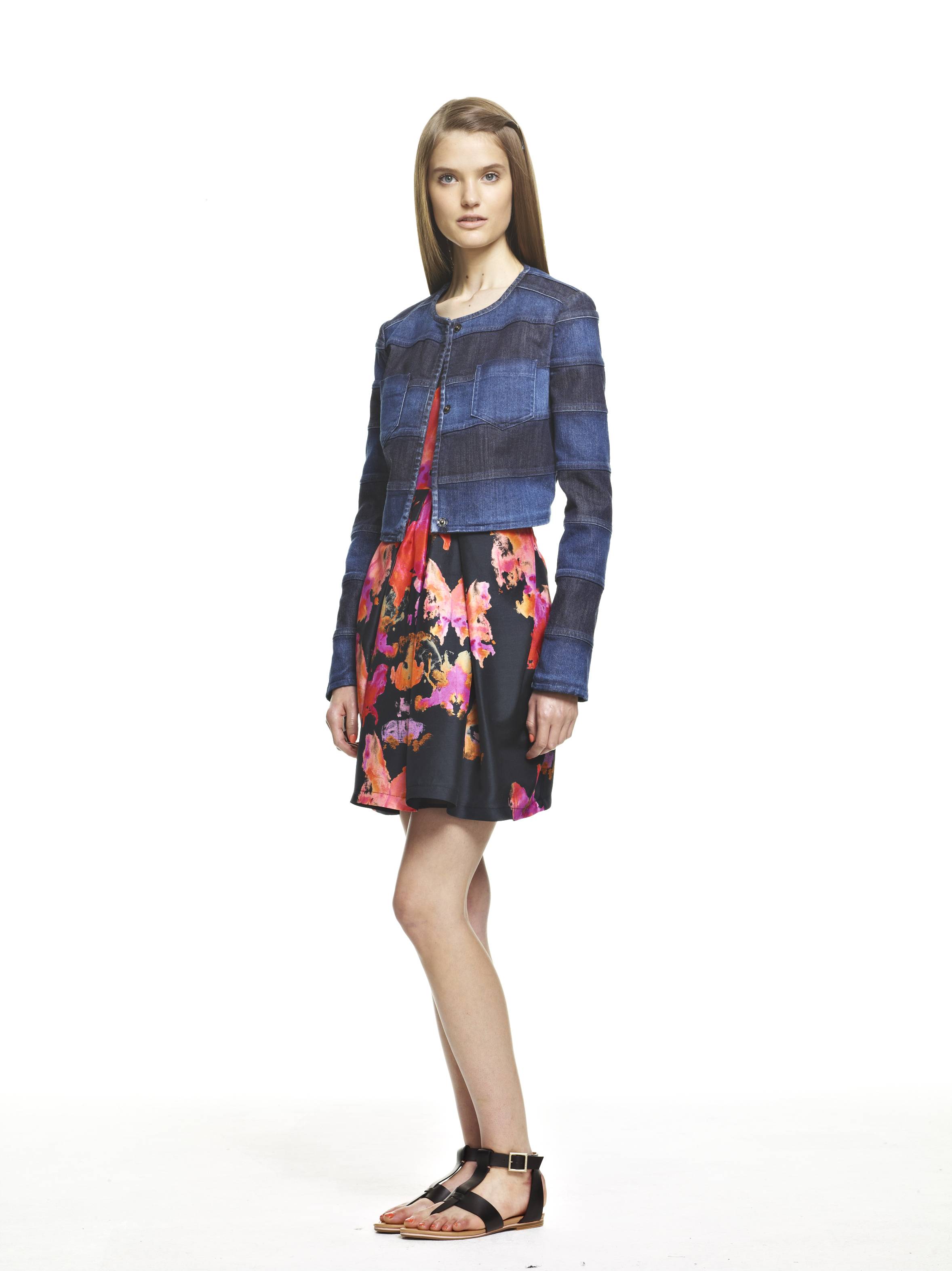 Fresh white cotton lace and fluorescent broderie anglaise are used for shirts as well as flirtatious swinging circle skirts, while a maxi denim skirt is worn with a printed T-Shirt for a bold and feminine allure.