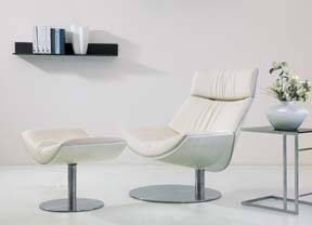 White leather swivel chair with ottoman, price upon request; available at Tui Lifestyle, 1800 State Road, Miami, FL, 305-573-5411; and 136 Greene St., New York, NY, 212-300-7046