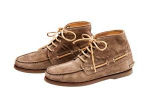 Tan, suede high-top mocassins, price upon request; similar styles available at Brunello Cucinelli, 9700 Collins Avenue, Bal Harbour. FL, 305-864-4833; and 683 Madison Ave., New York, NY, 212-813-0900