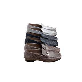 Selection of loafers in exotic skins, natural ostrich, navy ostrich, and grey crocodile, price upon request; available at Brioni Bal Harbour Shops, 9700 Collins Ave., Bal Harbour, FL, 305-868-9399; and Brioni, 57 E. 57th St., New York, NY, 212-486-0500