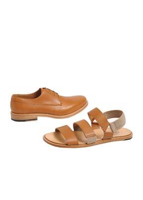 Lace-up loafer and sandal both in camel leather, $475 for the loafer and $395 for the sandal; both available at Calvin Klein Collection boutiques, 654 Madison Ave., New York, NY, 212-292-9000