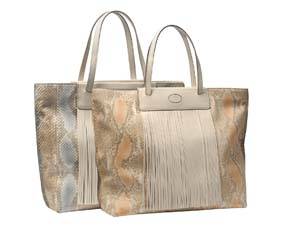 Python fringe top handle bags, $3,325; available at Tod’s, Bal Harbour Shops, 9700 Collins Ave., Bal Harbour, FL, 305-867-9399; and Tod’s, 650 Madison Ave., New York, NY, 212-644-5945