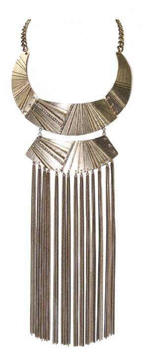 African Space long Necklace in resin, agate and plexi, $1,300; available at Saks Fifth Avenue, Bal Harbour Shops, 9700 Collins Ave., Bal Harbour, FL, 305-865-1100; and Christian Dior, 21 E. 57th St., New York, NY, 212-207-8448