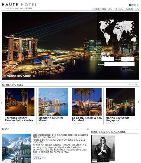 The Haute Hotel Network gives you access to booking specials like complimentary upgrades, daily breakfast, VIP services, welcome amenities and beyond.  Visit the continuously updated blog, your ultimate resource for information on new properties and Haute Living reviews.