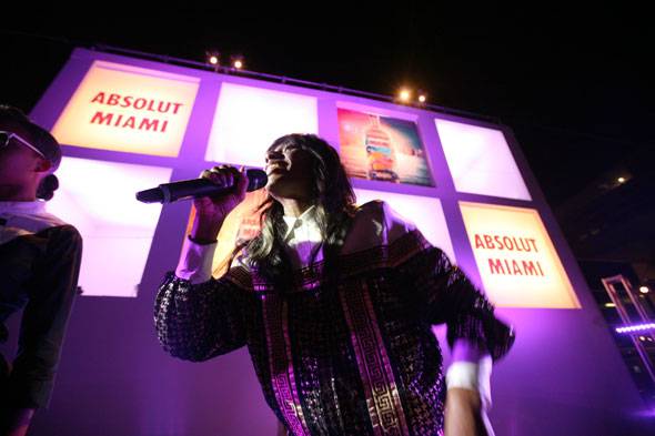 Swaying to the sounds of DJ Ross One, guests packed in to the legendary Fontainebleau hotel’s Ocean Lawn last night to sip on signature concoctions and wait patiently for a special performance by singer songwriter, Santigold. Guests were even invited on-stage to dance with the star beneath the Miami Beach breeze.