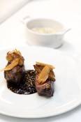 Chef Yannick prepared Oyster in Gelée with Leeks and Black Truffles, Artichokes Soup with Black Truffles, Sea Scallops Terrine with Black Truffles, Duck Foie Gras in Stuff Cabbage and Black Truffles, Australian Beef Sirloin Aiguillette in Black Truffle Sauce, and Chocolate Milk in Crispy Dark Chocolate Tube with Shaved Black Truffle.