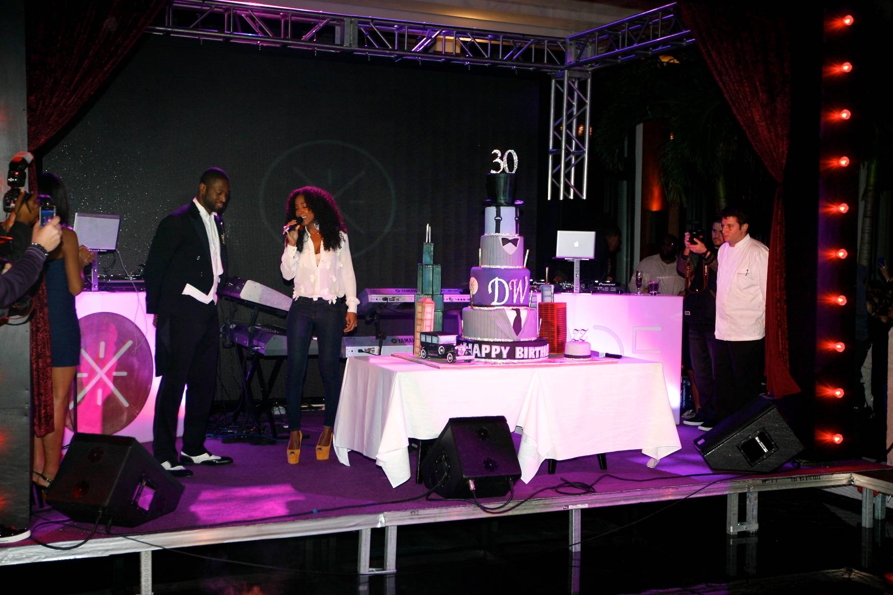 Following dinner, the Miami Heat All-Star was greeted by over 300 friends and VIP guests. The evening included special performances by Common, T.I., Rick Ross and Kelly Rowland. Wade was also surprised with a video tribute that included warm wishes from Marc Anthony, Jennifer Lopez, Michael Jordan, P. Diddy, Kelly Ripa, Anna Wintour, Queen Latifah, Jimmy Fallon and The Roots, Jay Leno, George Lopez, ABC’s Juju Chang, Al Roker, GQ’s Jim Moore, Kobe Bryant, teammates LeBron James and Chris Bosh, and others. Decadent and grandiose birthday cakes were also brought out for Wade, courtesy of Divine Delicacies Custom Cakes.