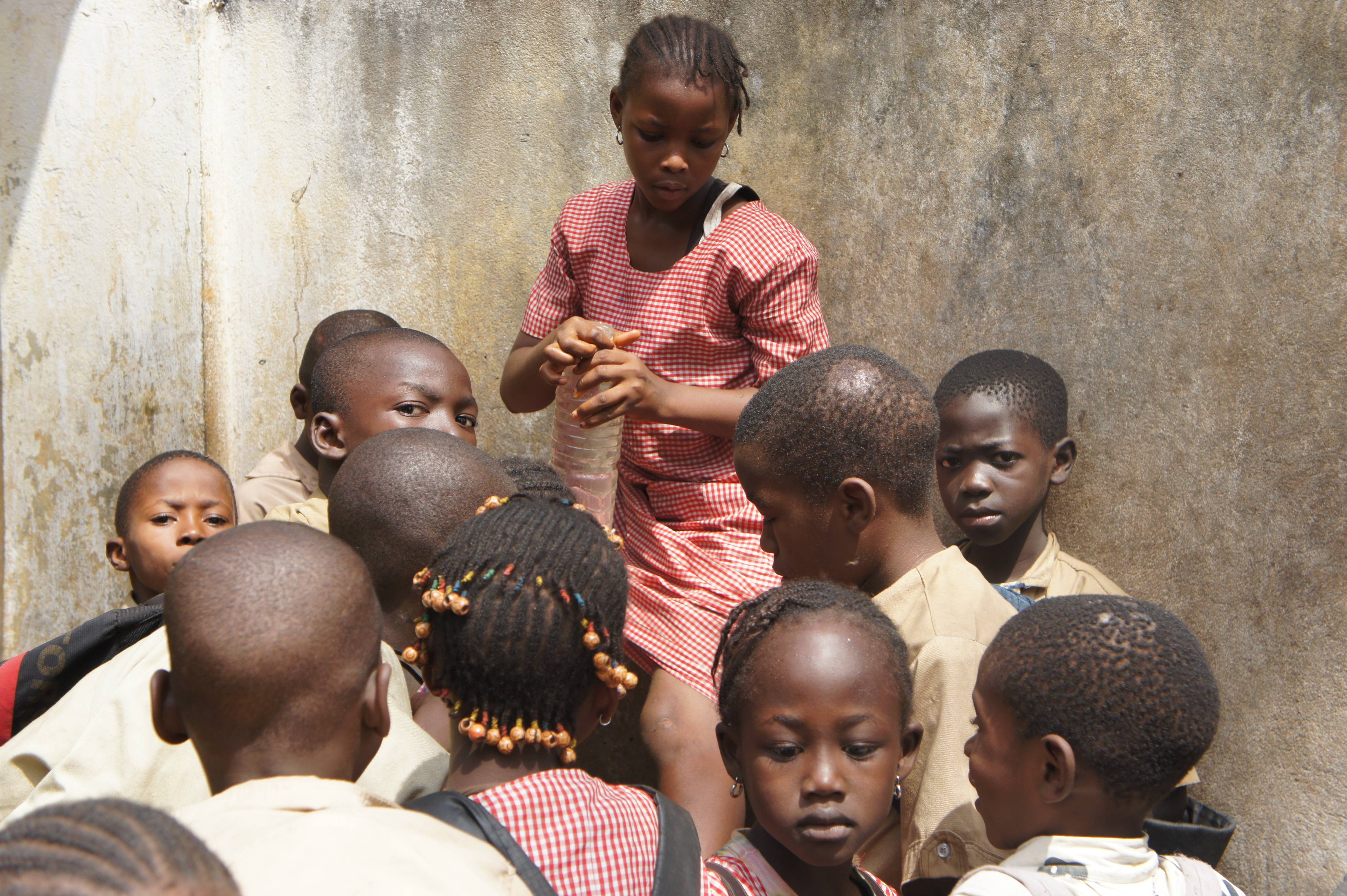 As I travelled to Guinea and visited the Tombo II Primary School, I witness first-hand the stories my team had often reported to us. As soon as the bell rang for lunch, students rushed past me and headed for the faucet. I followed them. They gathered around the faucet which was surrounded by dirty standing water and garbage that had amassed over months.