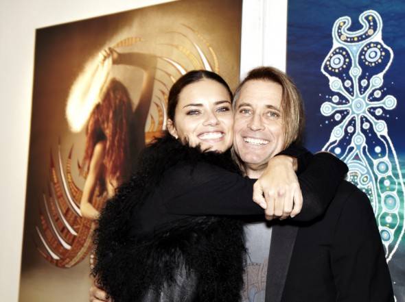 Nomad Two Worlds incorporates a remarkable collection of photographs ranging from dramatic and breathtaking scenic shots to alluring portraits of models such as Heidi Klum, Adriana Lima, Candice Swanepoel and Miranda Kerr, as well as superstar Jackman. The photographs, printed out on canvas, are then embellished with acrylic art reflecting traditional, cultural stories from the Indigenous artists’ point of view that further the narrative and the intent behind James’ photographs. Many of the stories told in the overlay art can be sung – painting and singing are often the way culture, tradition and the story of “family” are handed down from generation to generation.