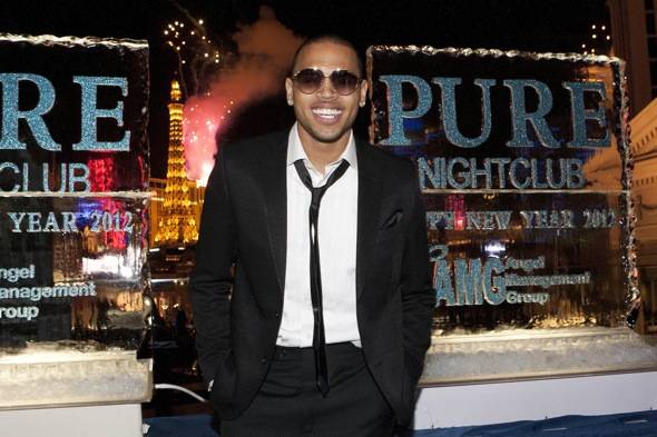 Hip-hop heartthrob Chris Brown took Sin City by storm as he rang in 2012 at Pure Nightclub inside Caesars Palace. Just after 11:30 p.m., the Grammy-nominated artist arrived at the packed resort to a large crowd filled with screaming and cheering fans. Looking stylish in his New Year’s Eve attire, Brown sported a sleek black suit, skinny tie and the ultimate A-list accessory, sunglasses. The attractive singer was smiling ear-to-ear as he turned heads while posing for pictures as female admirers chanted, “I love you, Chris!” The 22-year-old introduced his large entourage as he pulled them onto the red carpet to take photos with him. He then invited his model girlfriend Karrueche Tran to stand by his side as they exchanged kisses for all to see.