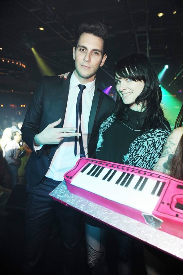 Gabe Saporta and his Cobra Starship band members Ryland Blackinton, Nate Novarro, Alex Suarez and Victoria Asher (aka Vicky-T) rocked-out on Friday night at Sin City hot spot 1OAK at the Mirage.