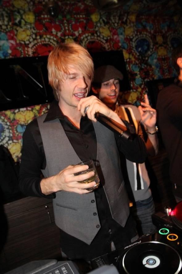 Carter and his crew dined at 35 Steaks + Martinis, and then settled into the VIP booth at Vanity Nightclub where they drank Belvedere and Red Bull cocktails. The singer’s father snapped pictures throughout the night, making sure to get a photo of Carter with the Vanity birthday cake. Later in the night, Carter got a hold of some glow sticks and threw them out into the crowd of screaming female fans.