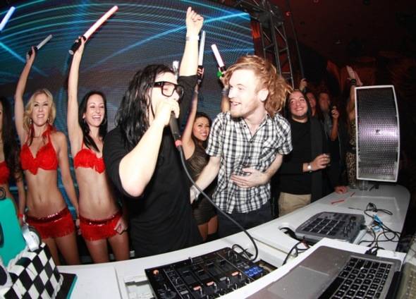 Skrillex, the superstar electronic music producer and Surrender Nightclub resident deejay nominated for five Grammy Awards, celebrated his birthday and performed last night at Mixmag’s Las Vegas party at Surrender at Encore Las Vegas.