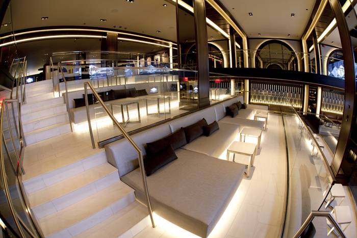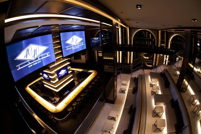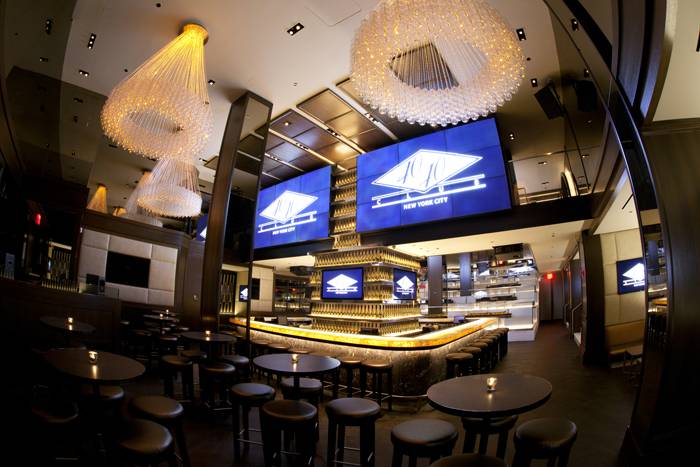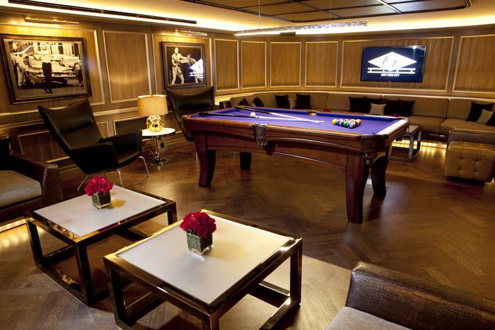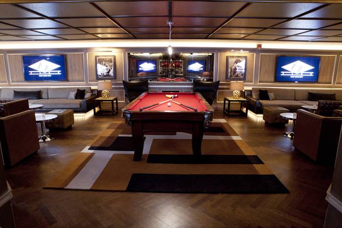 Haute Living enjoyed a behind-the-scenes tour of the club and saw some of the renovation’s highlights including: several private lounges–suitable for anything from intimate game screenings in the smaller lounges with plush couches and projector screens, to larger gatherings with multiple couches and a pool table. The grand bar is lit up and boasts specks of amber in the molding of the bar top and massive screens featuring multiple games. We went ahead and did a little taste testing and give 40/40 our enthusiastic approval for dishes like miniature chicken quesadillas, cookies and cream cheesecake, cajun hot wings, sliders of all sorts and more.