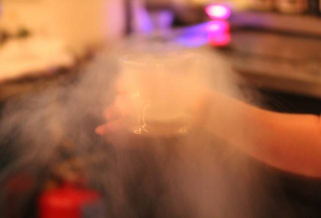 Booker & Dax has taken over the back area of Momofuku Ssam, the space that formerly housed Milk Bar and, briefly, Bar Bar. The new cocktail lounge is a concept by Momofuku owner, David Chang, and the French Culinary Institute’s director of culinary technology, Dave Arnold. The bartenders here may as well swap their aprons for lab coats – the beverages at Booker & Dax are made using a range of scientific techniques and high-tech gadgetry. Perhaps the most buzzed-about is the Friend of the Devil, a mixture of rye, Campari, sweet vermouth, Pernod and bitters, that is stabbed with a 1,500-degree, red-hot poker to caramelize the sugar in the booze. Sounds sweet. Also on the to-do list for the bar staff: in-house carbonation and distillation and the regular use of a rotary evaporator and centrifuge to mix drinks. Chilling glasses in a fridge is old news here, the range of drinkware is cooled on the spot by a shot of liquid nitrogen.