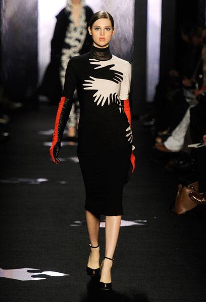 Even the prints for which the house of DVF is known for were somewhat different this time around, as they seemed all the more mature as well. The interlocking hands I found to be the most posh, although the chunky chain link and abstract floating paisley were conversation pieces as well.