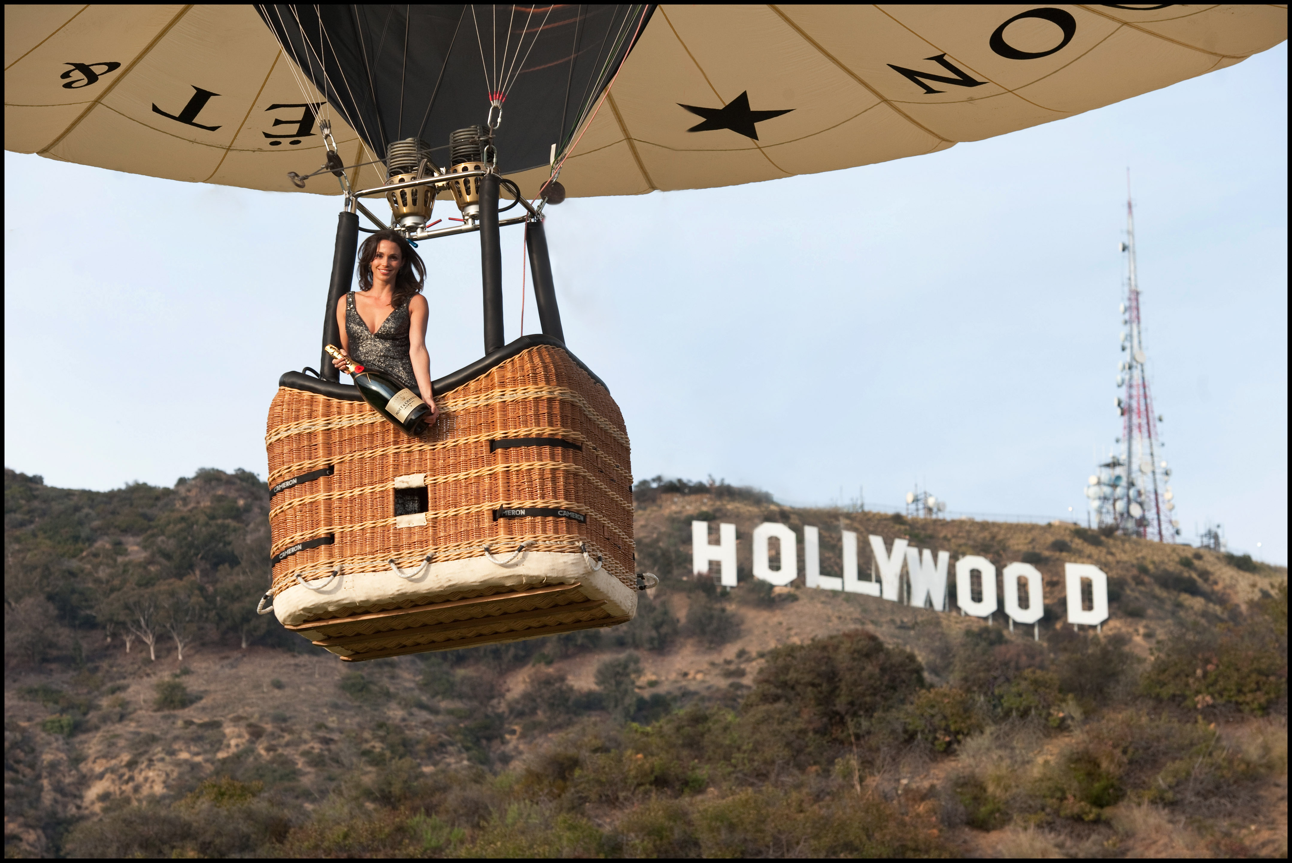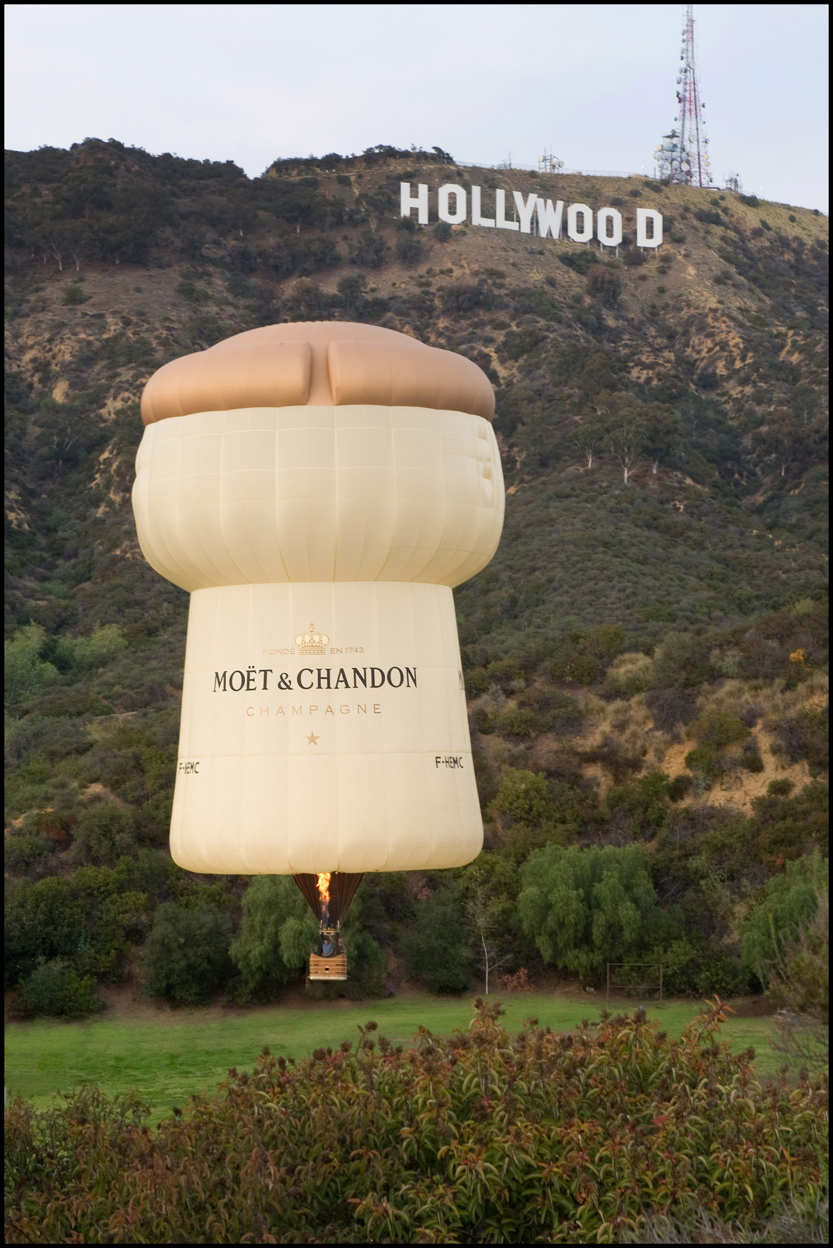 The giant Moet & Chandon cork, “The Spirit of 1743” rose in France and has drifted all the way to the Hollywood Hills. Just in time for this Sunday’s Oscars. Coincidence? This is the fourth year Moet & Chandon are the exclusive champagne of the Oscars.
