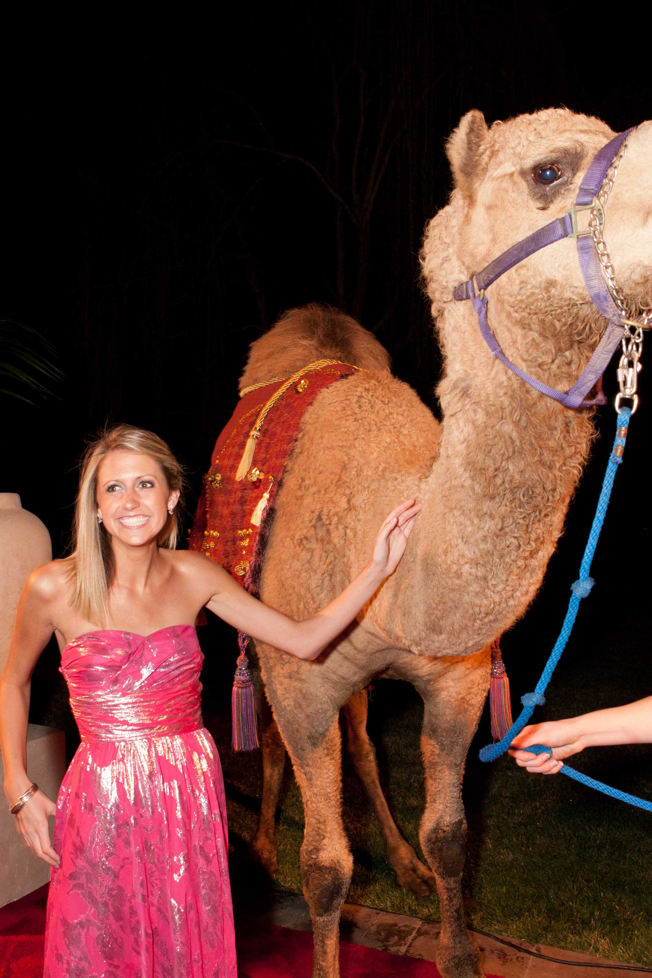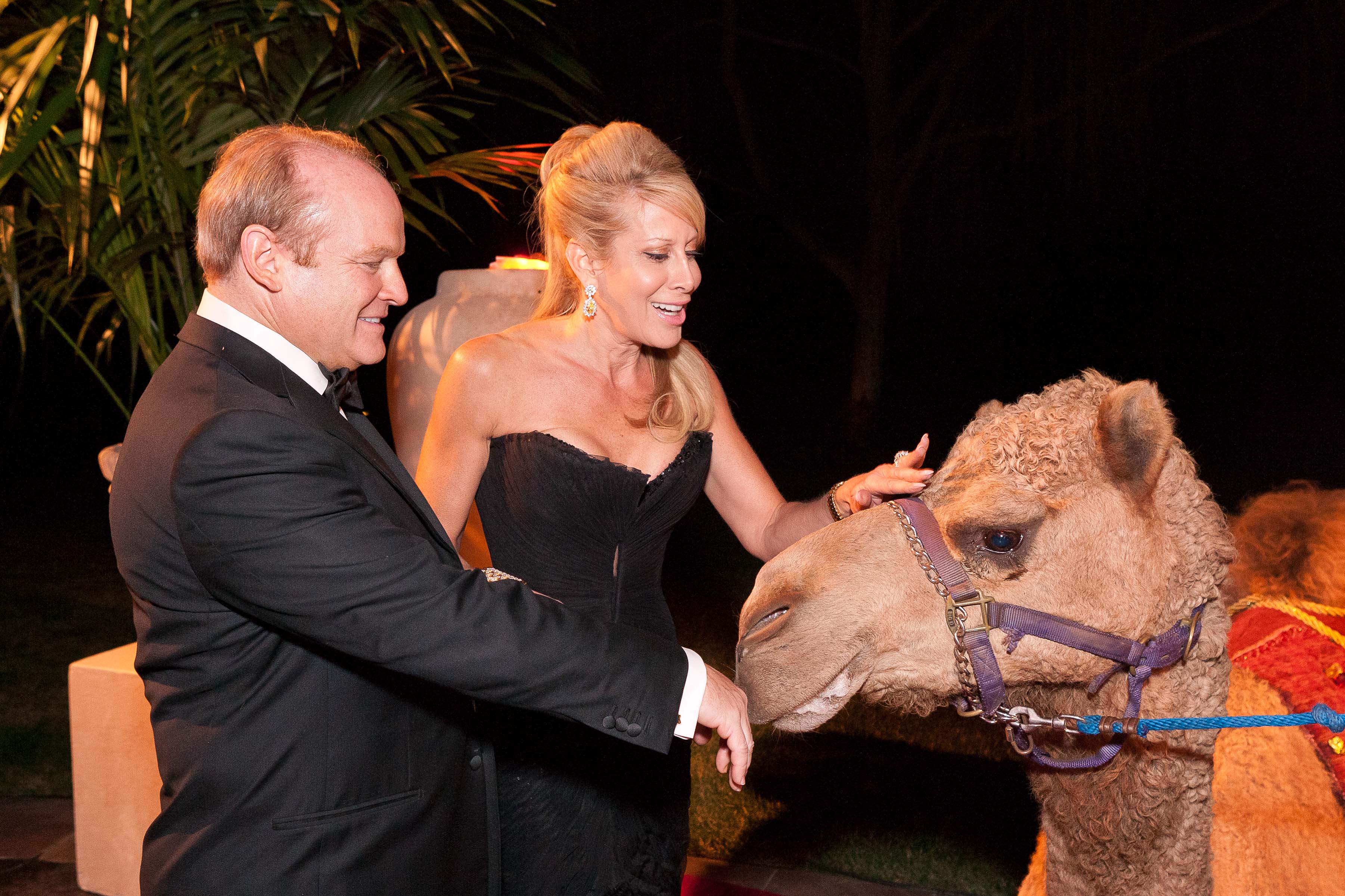 The fantasy began with a red-carpet entrance sprinkled with human sculptures.  A Moroccan-themed tent ended the red carpet where guests were greeted by a darling camel, welcome cocktails and Jillian Manus & Alan Saltzman.