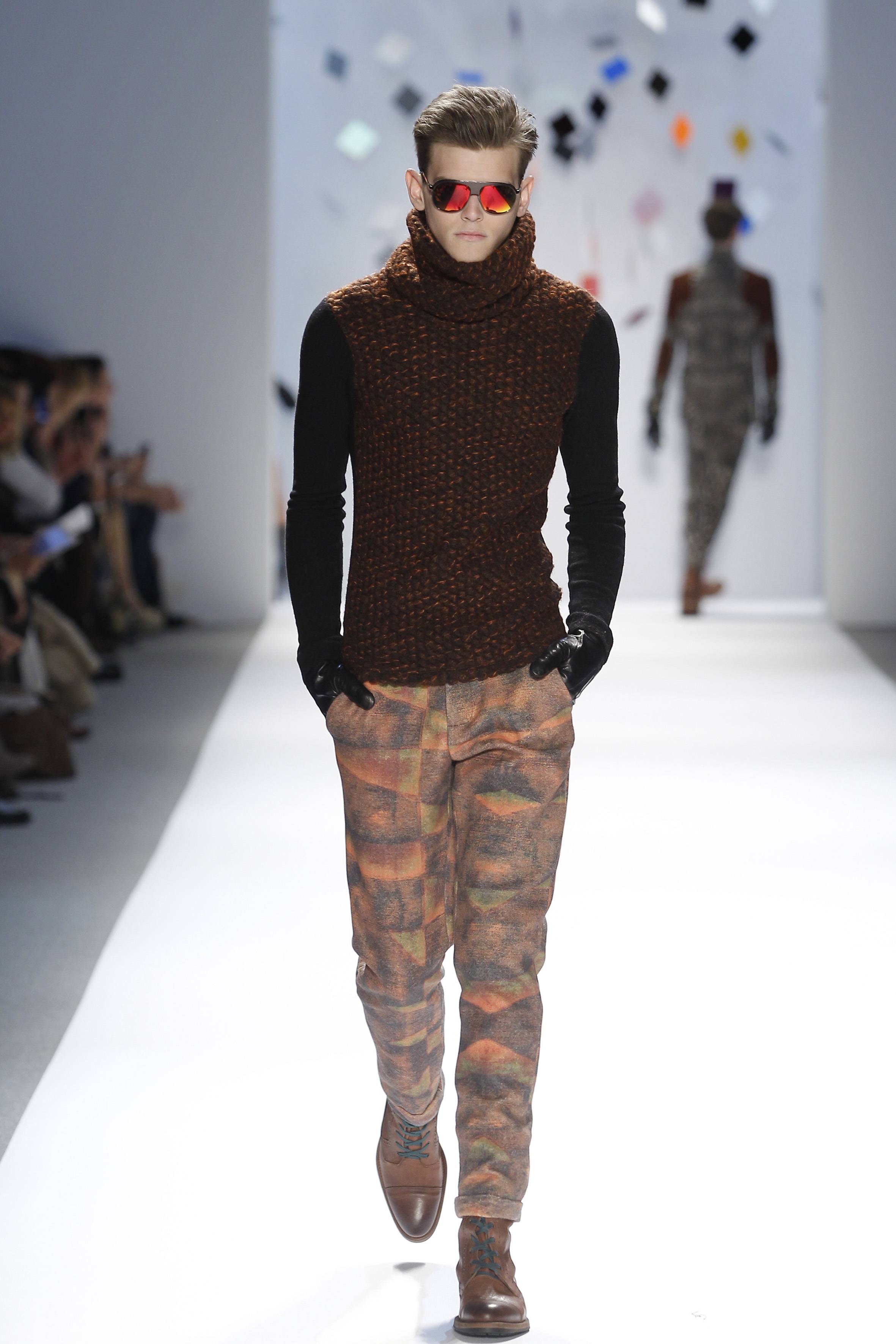 The Custo Barcelona F/W 2012 runway show was equipped with the brand’s usual energetic perspective, one that has become internationally acclaimed. For this collection, the designer focused on textures and fabrics, specifically wool. Through the use of boiled, perforated and cut-off wool, the designer showcased the range of the fabric, highlighting it with the use of color in shades of green, red and brown.