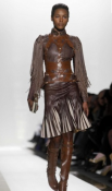 Yesterday’s stand out show was undoubtedly Max Azria’s Herve Leger F/W 2012 collection in the Theater at Lincoln Center. The exquisite collection was equipped with leather panels, heavy pleating, fringe and several variations of harnesses, including some with python and fur arm pieces (consider these a must-have item for the season). Models were appropriately styled in a minimalistic fashion, with sleek ponytails and natural makeup, allowing the bold pieces to speak for themselves.
