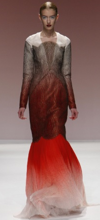 Marking the designer’s first-ever runway show during Mercedes-Benz Fashion Week, Bibhu Mohapatra’s Asian-inspired F/W 2012 collection was widely received, and equipped with structured shoulders, fur, geometric shapes, ombre, embroidery and feather embellishments.