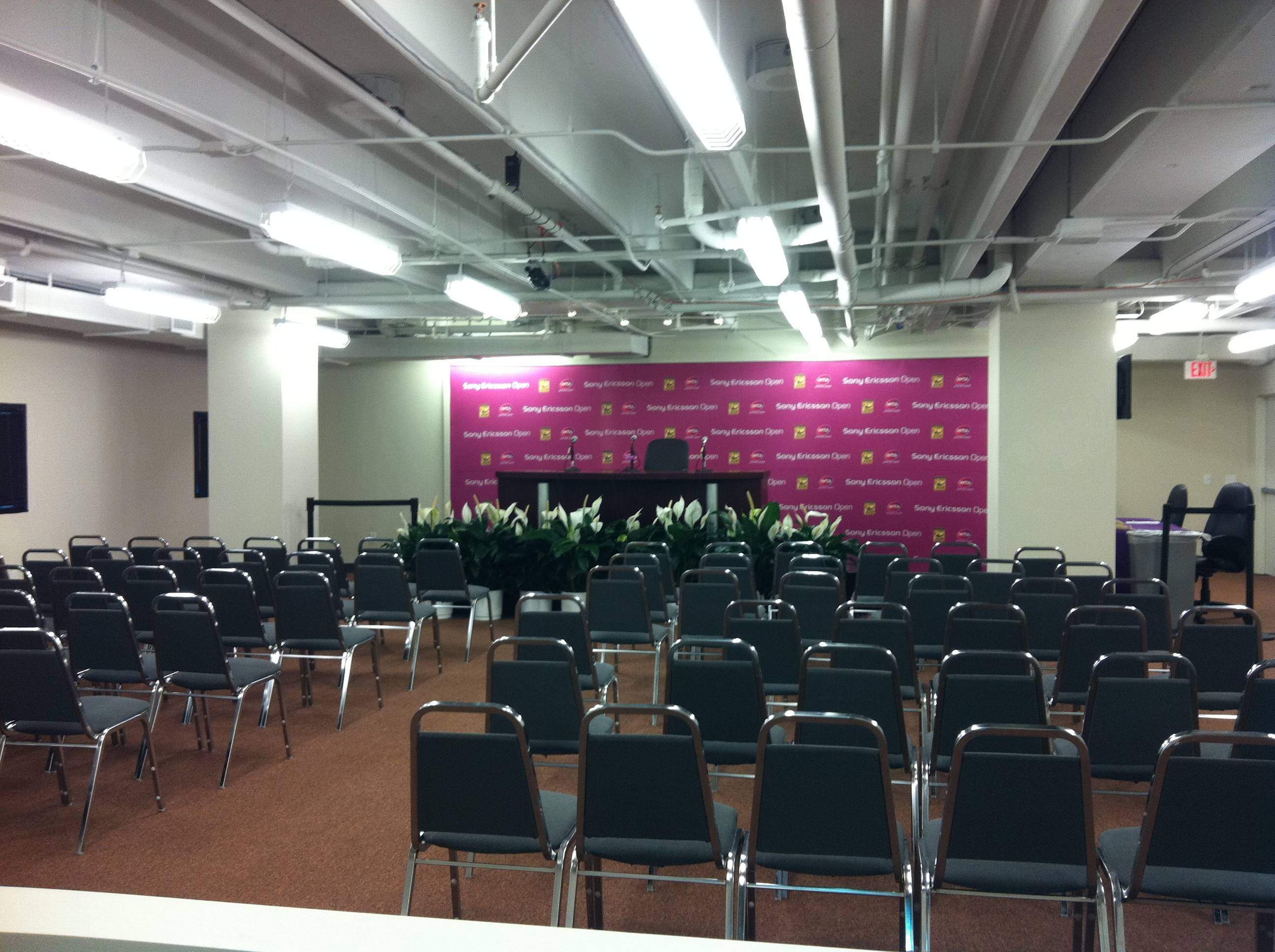 From the entrance of the venue to the Grand Slam courts and players’ lounge, Barrett took us through every detail involved in creating an event of this magnitude. “Well first, we really want to create vibrancy through color, and then you take that color all the way through the site,” said Barrett. “In this case we partner with Sony Ericsson and we bring in their color throughout the site. And their colors really work because they create energy. We create a dramatic entrance and we take people from where they are in their daily lives and bring them into a show. We give them as much value as we possibly can.”