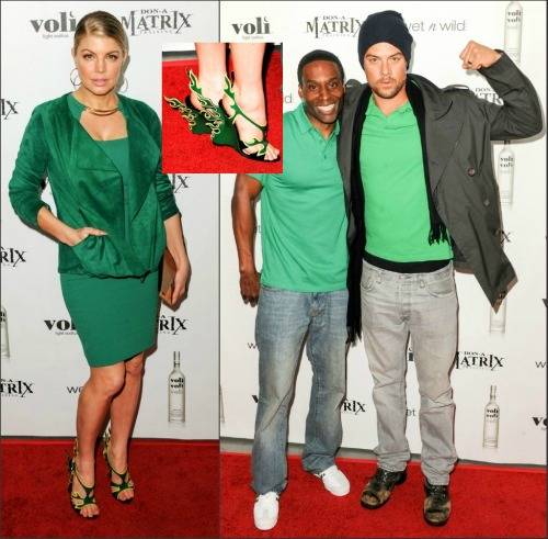 Fergie and her hubsband kicked off St. Patty’s Day in Beverly Hills, along with friends at the Don-A-Matrix party to help support the launch of Don Brooks’ new fitness program. Wearing all green from head to toe, the 36-year-old singer rocked a stylish BCBG MaxAzria dress, along with an Adolfo Sanchez jacket, Kzeniya clutch, XIV Karats earrings, and Prada shoes.