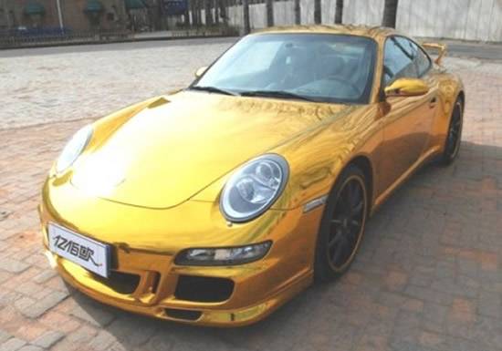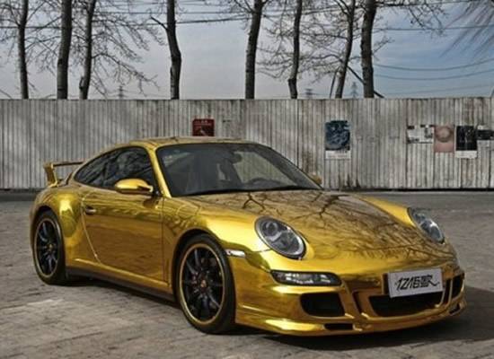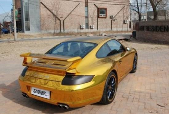 Anything in the color is sure to make a bold statement, whether it’s flashy or just plain shiny. We’ve seen tons of gold cars like gold-wrapped Infiniti G-37 and gold-plated Dartz, especially on the streets of China, but this is the first time seeing a gold Porsche 911 Carrera 4S there. The gold Porsche is unlike other customized cars. It comes equipped with blacked-out taillights, gold-lined wheels to match the shiny, metallic exterior of the car and a big rear wing, making this Porsche a must see.
