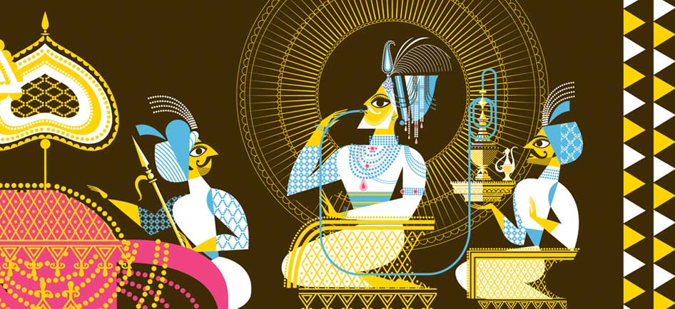 Along with the Maharaja’s treasures, the museum commissioned contemporary artist Sanjay Patel a display on the second floor of the exhibit. His art is a sort of Hindi pop-art hybrid, full of color and Indian deities.