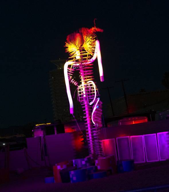 The First Friday Las Vegas arts and culture festival featured the first Vegas Burn! The Flames of Change with a burn signifying a transition from the old to new way of doing things, bringing a new energy and spirit to the growing Downtown Las Vegas district.