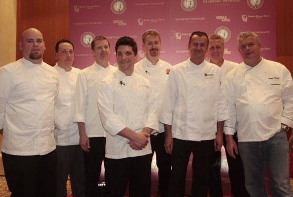 Later in the evening, resorts hosted the Friends of James Beard Foundation Benefit Dinner to salute their 25th anniversary and to support the foundation’s scholarship fund. Foodies and their guests enjoyed a savory five-course menu prepared by chefs representing James Beard Award-winning restaurants including Matthew Hurley from CUT by Wolfgang Puck, Jacob Wetherington from Thomas Keller’s Bouchon, Jason Neve from Mario Batali’s B&B Ristorante and Carnevino, Sean Roe from Emeril Lagasse’s Table 10, James Beard Award-winner Luciano Pellegrini from Piero Selvaggio’s Valentino and Olivier Dubreuil, executive chef for the Venetian and the Palazzo with wine pairings provided by Southern Wine & Spirits.