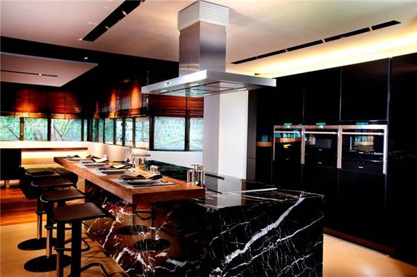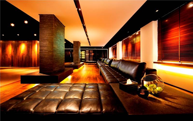 It’s described as a ‘sensory oasis’ and is divided into five areas: dining, cooking, lounge, beverage and training. Top of the range lighting and audio equipment complement the poshly designed room.