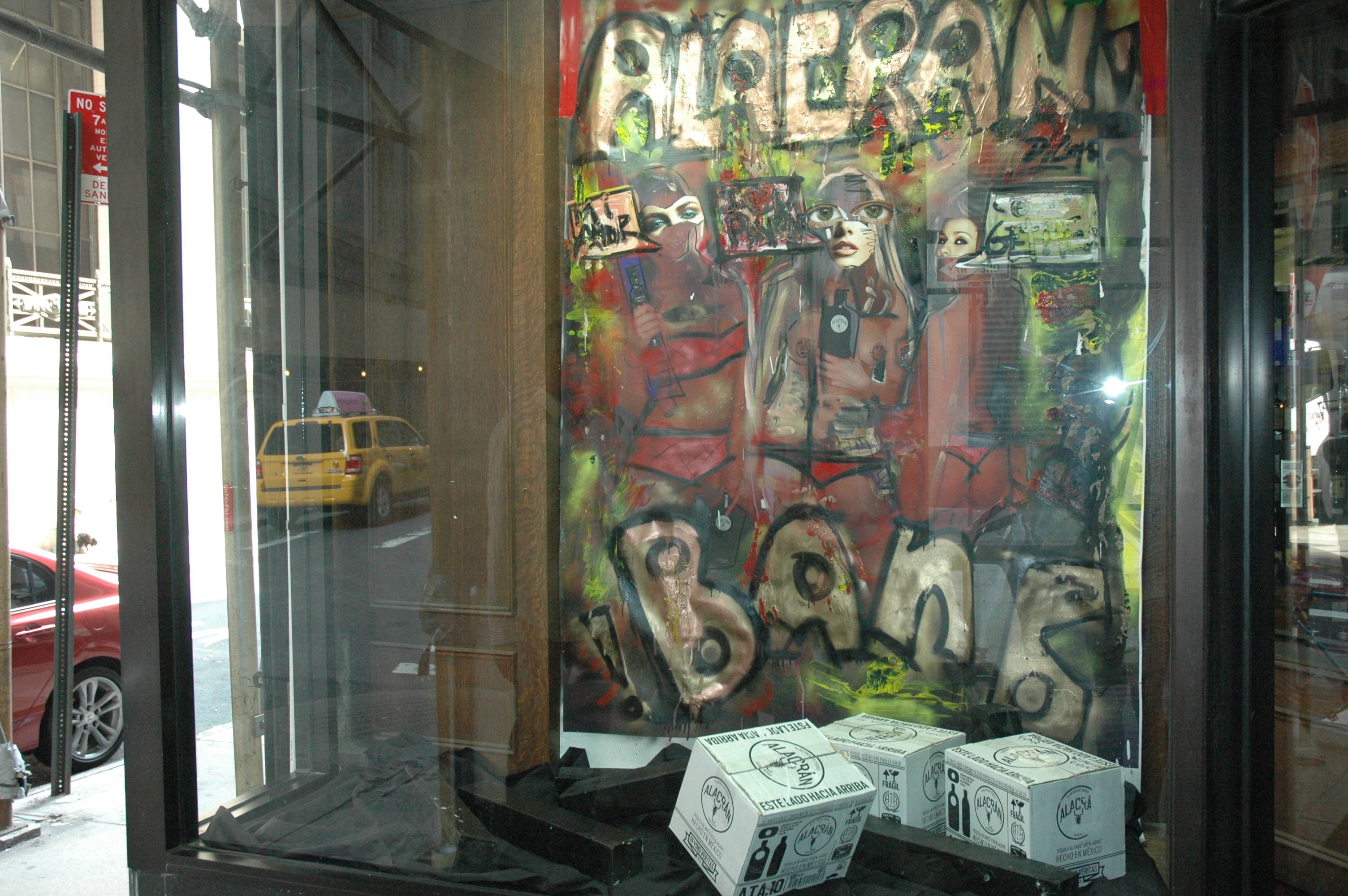 The murals of interest are not your ordinary window art; Tequila Alacrán spearheaded the trend by commissioning famed artist Peter Tunney to customize the window of Rosetta Wines on Wall Street. Due to the public’s overwhelmingly enthusiastic response, the tequila masterminds have done it again–this time bringing on none other than Domingo Zapata to create the hautest window display in town.