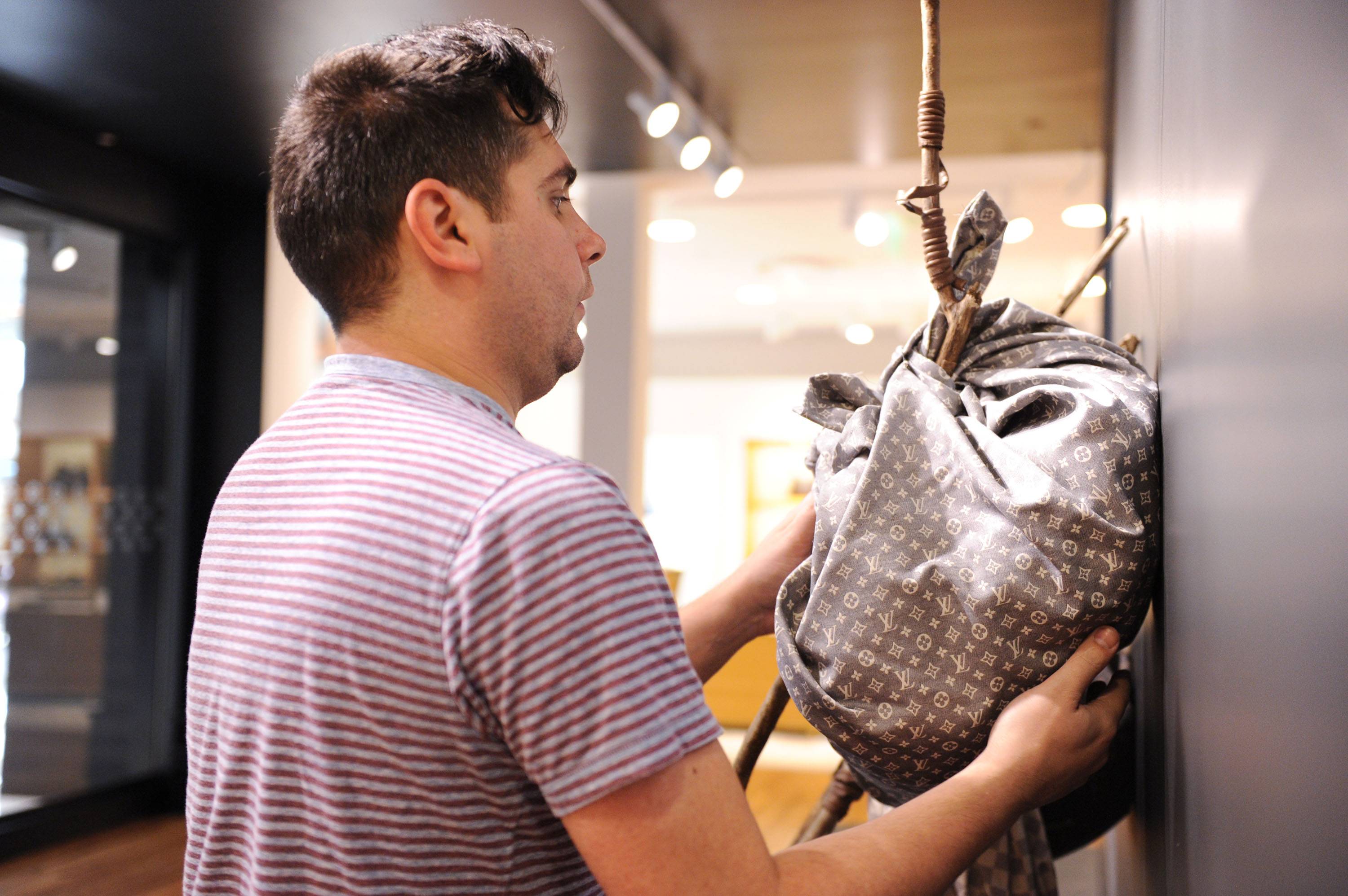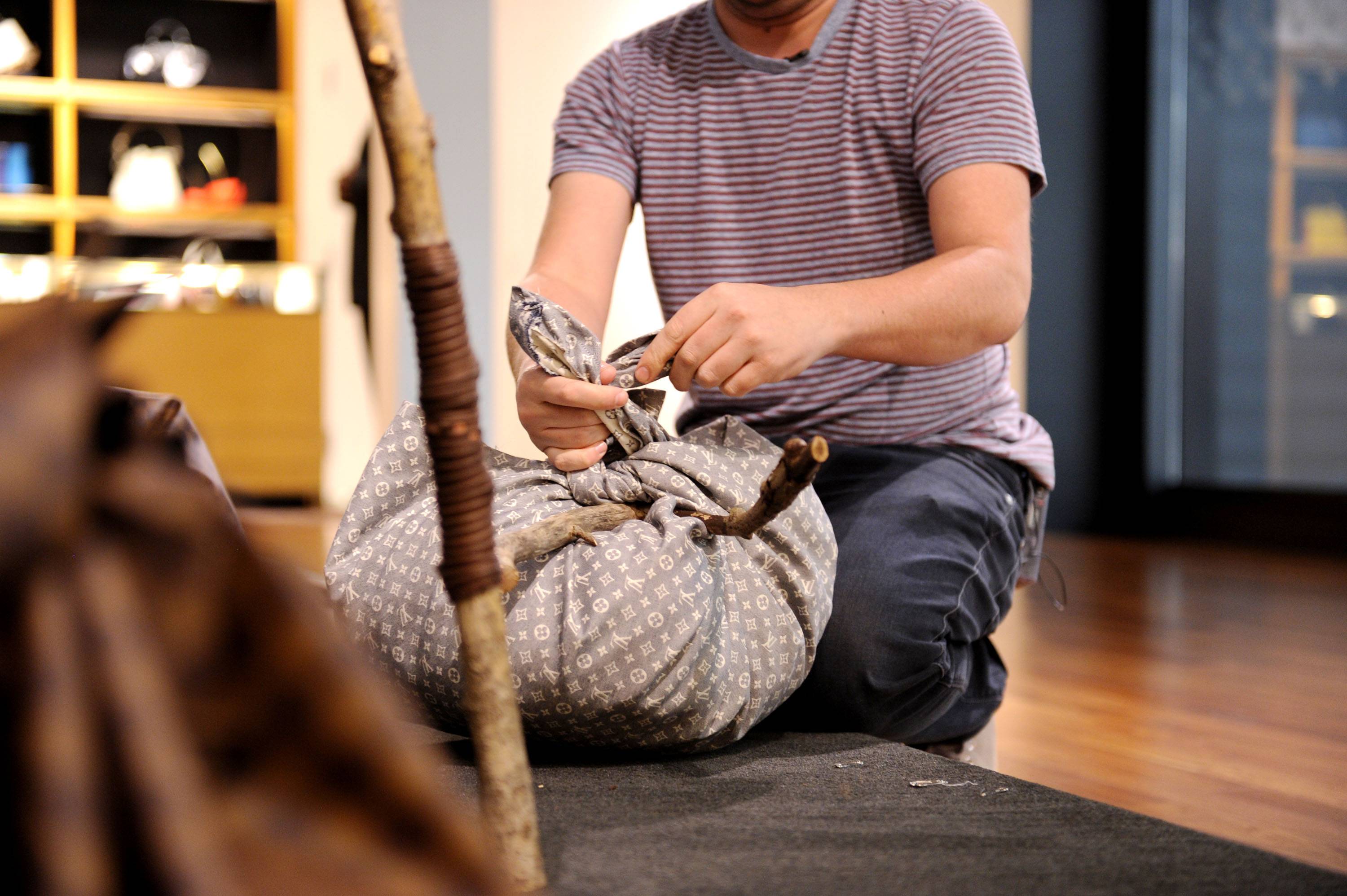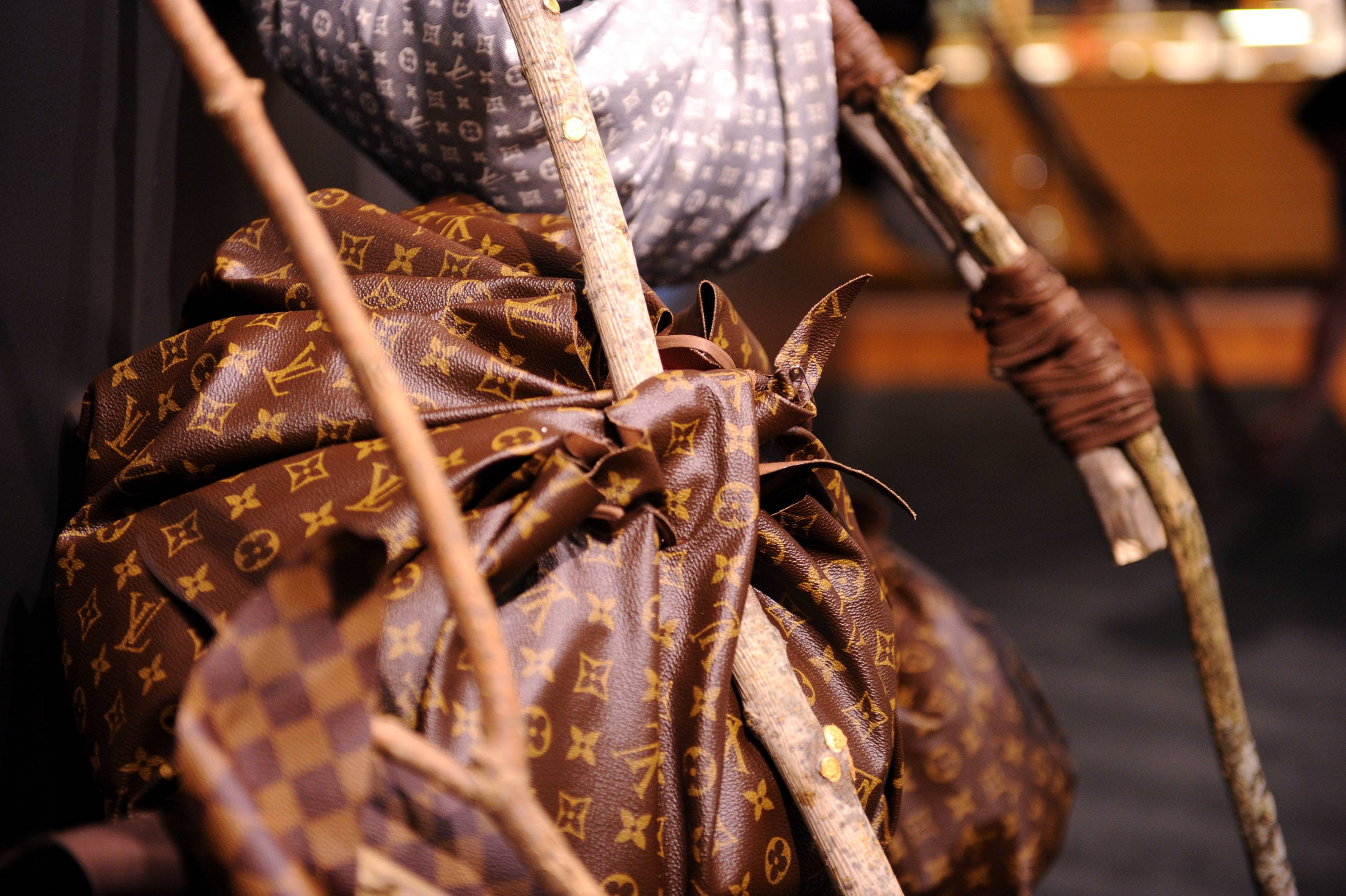 The project, which, for those who didn’t get the chance to experience it first hand, will be on display until November 2012, is an original sculptural piece that explores Louis Vuitton’s legacy as masters of the art of travel. We love how Bas took this concept to the rawest form; fashioning bindles from an assortment of LV monogrammed fabrics fastened on long branches.