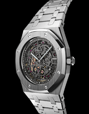 But for the purist, the ultimate Royal Oak is probably the original –collectors still search the world for one of the 1,000 A-series Royal Oaks that made up the first production run. It’s for those purists that Audemars Piguet this year created a new watch: the Extra- Thin Royal Oak 39mm, which debuted at this year’s Salon International Haute Horlogerie in January. A near exact reincarnation of the original A-series, it features all of the very first Royal Oak’s signature elements, including the original 39mm case diameter and the distinctive octagonal bezel with its eight white gold screws; and it’s driven by the same movement – the elegantly flat calibre 2121. Though the Royal Oak and Royal Oak Offshore will undoubtedly continue to also be vehicles for a whole range of daring innovations, we’ve no doubt that the Extra-Thin Royal Oak 39mm will enjoy the same devoted following as its noble ancestor.