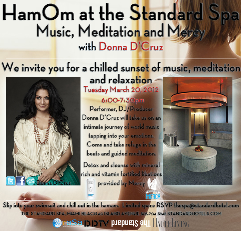 While most Winter Music Conference festivities are exhausting and carry over into the wee hours of the morning, international superstar and award-winning artist Donna D’Cruz is taking a different route by inviting Miami’s elite to meet her at The Standard for an intimate affair that will take attendees through a “journey of world music,” while sipping detoxifying cocktails provided by Mercy.