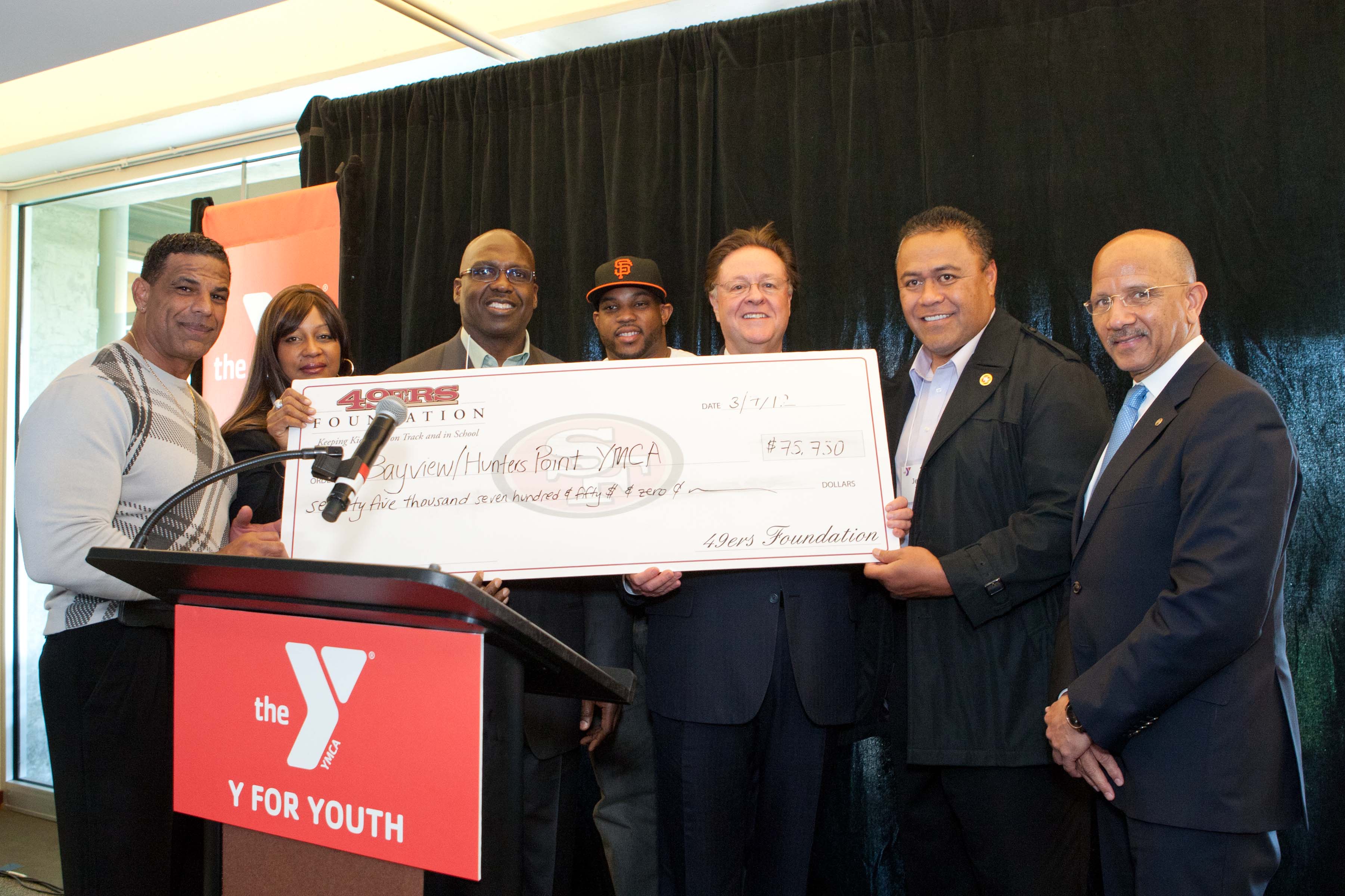 Both Ed Lee and Bill Neukom shared personal experiences of the Y’s impact on youth. In between the live accounts, flat-screen televisions played recorded testimonials of children whose lives were transformed by the positive impact of the Y. The San Francisco 49ers Foundation also showed their longstanding commitment to the Bayview Hunters Point YMCA with a check for over $75,000.