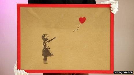 Girl and Balloon was one of the more than 18 pieces sold Thursday, and it fetched £73,250—almost five times more than the estimated pre-sale price. The image was painted directly onto a cardboard backing of an Ikea frame.