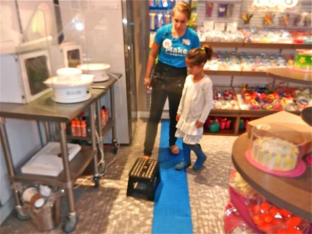 I picked up my twin nieces from school since my sister and her husband were off to Jazz Fest in New Orleans. My nieces and I met my parents for a quick snack at La Bottega before they left for Europe for a few weeks and then Then Stella, Marlee and I were off to Make Meaning. It is such a great place and they really took care of us there. Stella made a cake with all sorts of hearts and designs, Marlee made cupcake soaps with tons of shapes and they both made heart shaped candles in yellow, pink, purple and red. They also made jewlery and then we all got candy and bought little dolls as gifts. We had a blast!