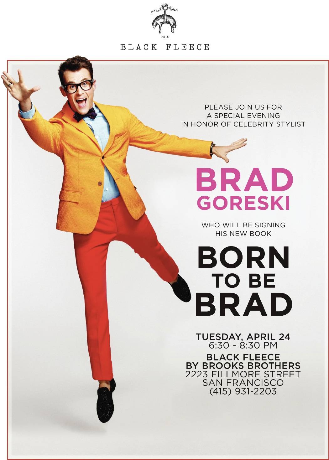 This Tuesday, April 24, Brad Goreski will be joined by his adoring fans at Black Fleece by Brooks Brothers for the signing of his new book Born to Be Brad, My Life and Style So Far. The book gives the world its first behind-the-scenes look at how a kid from a small town in Ontario became a trusted style advisor to Hollywood’s A-list celebrities.