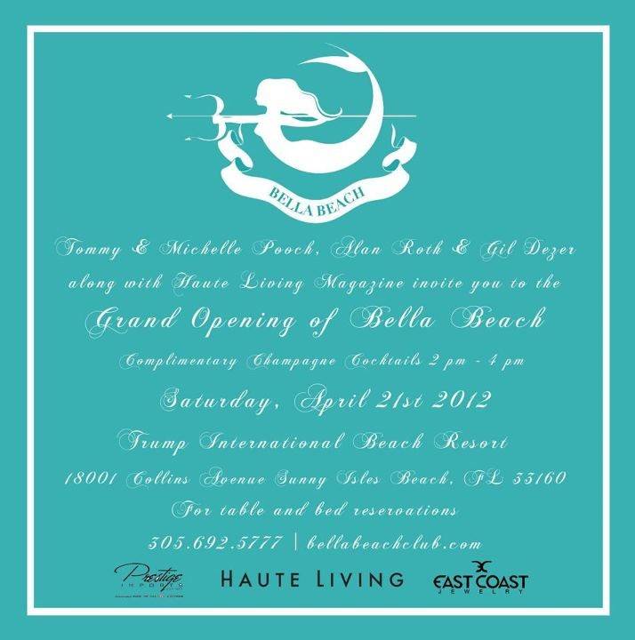 Haute Living, Prestige Imports, East Coast Jewelry and hosts Tommy and Michelle Pooch, Alan Roth and Gil Dezer invite VIPs to the Trump International Beach Resort on Saturday, April 21 for complimentary champagne cocktails in celebration of the property’s Bella Beach grand opening.