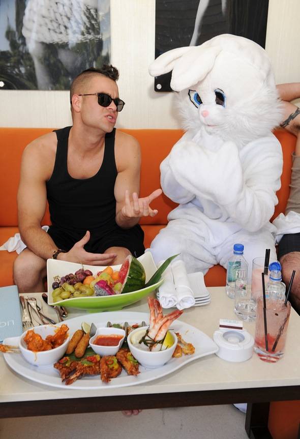 Mark Salling dines with the Easter bunny character at Liquid Pool Lounge at Aria.