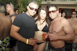 The pool party scene was in high gear Saturday during a gorgeous afternoon at Encore Beach Club at Encore Las Vegas. Steve Little, who plays Stevie Janowski from HBO’s “Eastbound and Down,” partied with pretty lady friends in a lavish cabana while nearby, Michael Shouhed from Bravo’s “Shahs of Sunset” soaked up some sun and the hot scene with friends at a daybed.