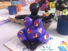Walking through Punda, our interest was piqued by a sculpture of a plump woman with large breasts and a bottom to match. These sculptures, found in various sizes all around Curacao, are called “Chichis,” a name given to the eldest daughter, sister and caregiver in the family. The sculptures are the work of a very special and passionate artist named Serena Israel, who created the Chichi in 2007 after arriving in Curacao with nothing but a dream. After creating the Chichi, she began recruiting women from a local church to help paint the sculptures; these women were transformed in the process, discovering their identities as indispensable cultural artists. Serena invited us into the Chichi Factory where, against the beautiful tropical landscape, we learned the history behind the precious Chichis and painted our own.