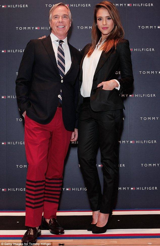 Helping to opening the new flagship Tommy Hilfiger store in Tokyo, Alba posed for pictures with Tommy Hilfiger himself. As the face behind one of the world’s most successful fashion brands, Hilfiger, 61, wore a pair of fire engine-red pants emblazoned with a slew of thick black racing stripes on the bottom along with a suit jacket, tie and a pair of glossy burgundy loafers.
