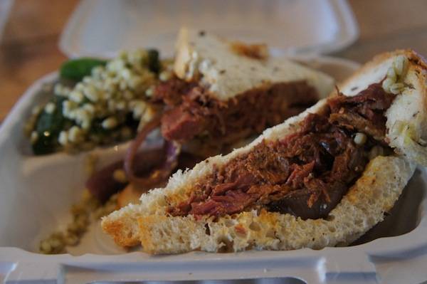 And then there’s the pastrami. It sells out and sometimes you can’t get it for another 10 days. But if you’re lucky enough to be there when there’s pastrami, get the meaty “K+Z” sandwich, made up of pastrami, chicken liven, Dijon and onions (above).