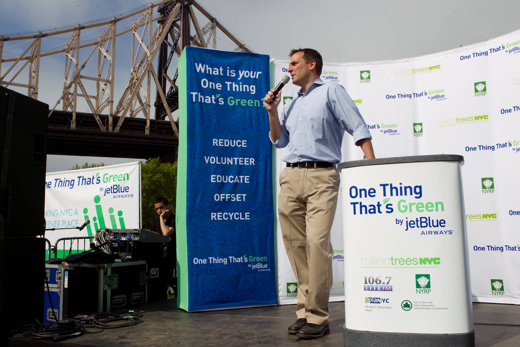 The April 21 event in Queens was so much more than planting trees, Greg T from Elvis Duran and the Z100 Morning Show played upbeat music and volunteers did warm up exercises to the music. The day finished off strong with a performance from Jon McLaughlin singing tunes from his upcoming album “Promising Promises.”