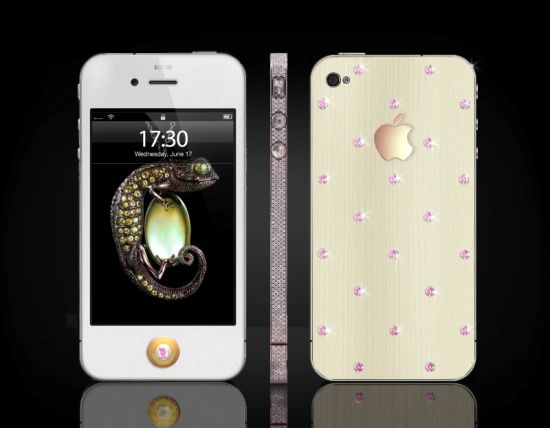 The device is capable of holding 850 diamonds, around 4.33 carats on its 18-carat golden frame. No details were forgotten, along with the diamond-studded frame, the home button is replaced with a large pink Princess cut diamond.