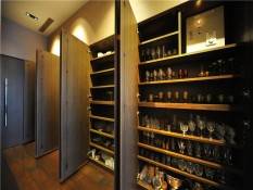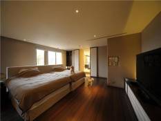 Each room is extremely spacious and the apartment features a Habaci-style kitchen for entertaining guests. All of the furniture in the home was custom designed by Cecotti Collezioni while the walls, floors and doors were all imported directly from Italy. Inside “The House”, you’ll find famous original Japanese artwork that was painted on sit, courtyards and terraces, a massive walk-in closet and even enough room for 200 pairs of shoes.